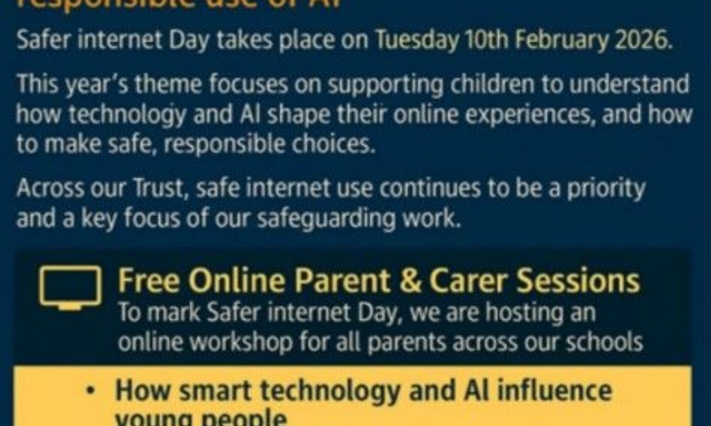 Mrs Semmens, Trust Director of Inclusion and Vulnerable Pupils would like to invite all parents and carers to join her for an online session with advice and guidance about smart technology and AI.